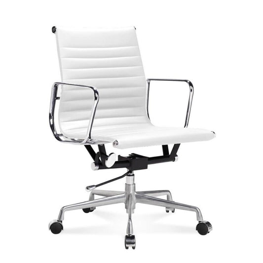 Thin Pad Ribbed Leather cushions and Steel Frame Office Chair Low Back