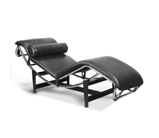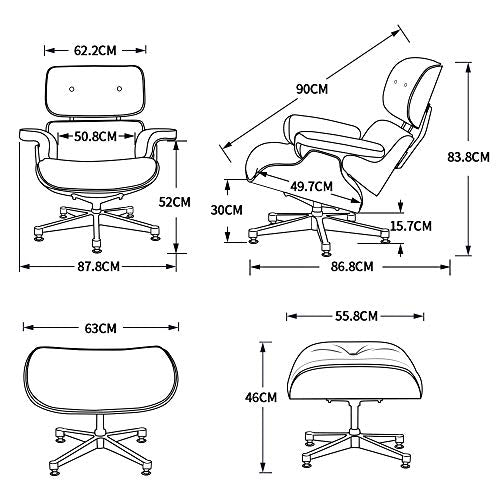 Lounge Chair and Ottoman Black Leather Walnut wood with Black metal parts